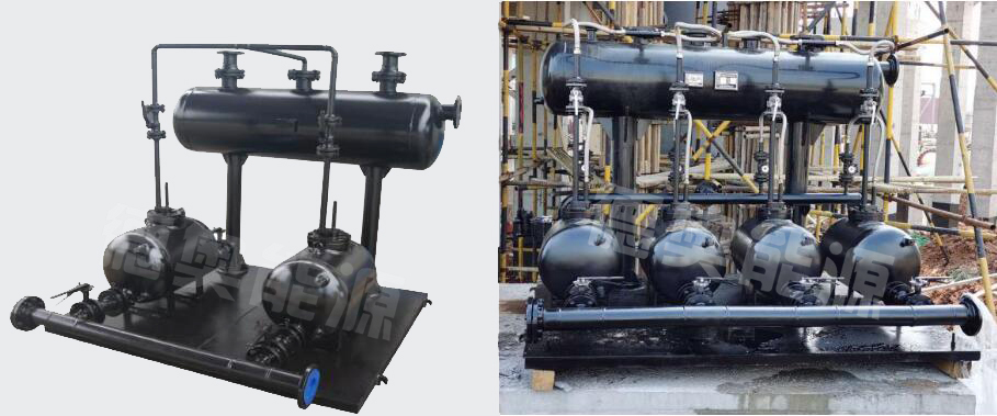 氣動凝結水回收裝置由氣動冷凝水回收泵、集水容器和其它輔助設備及組件組成,緊密的安裝在一個工作平臺。