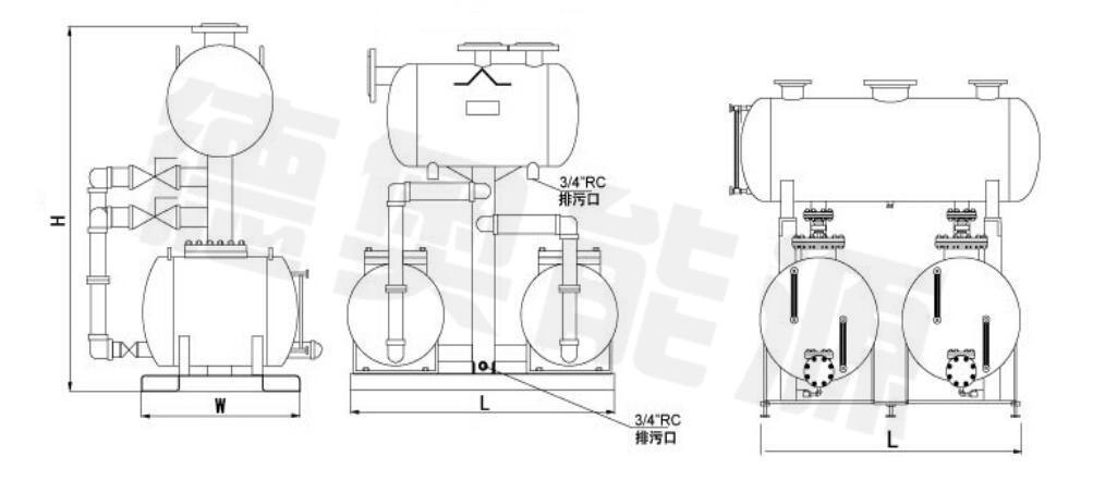 4.凝結水回收裝置為非標產品,即使處理量相同,設備實際尺寸會根據實際系統工況而針對性設計;