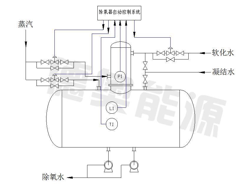 自動進水、自動進汽、自動補溫,使低位熱力除氧器實現全自動無人值守,根據汽、水工況變化而即時調整,確保達到除氧效果。自動液位溢流裝置替代傳統的多級水封為,使溢流系統簡單實用。