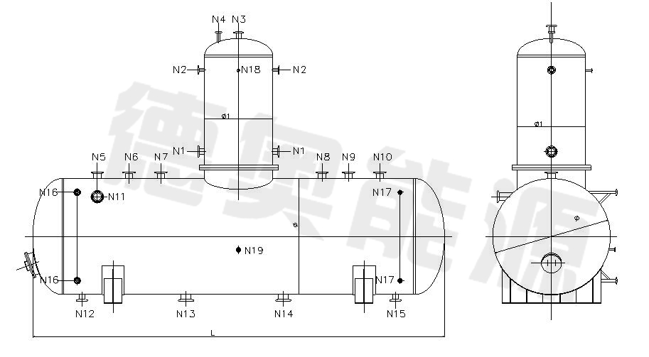 其中: DRC為低位布置高效多功能熱力除氧器產品代號
